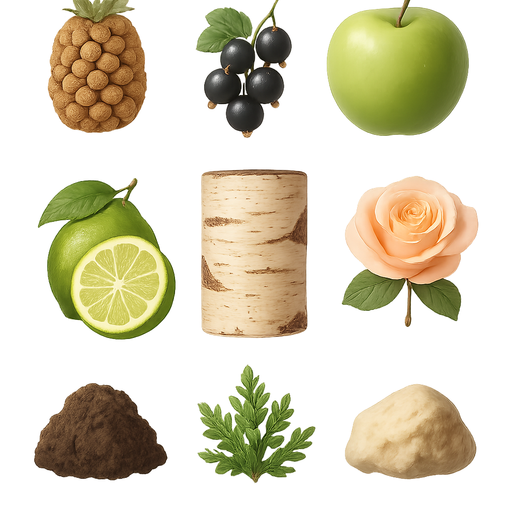 - نوتهای ابتدایی: ترنج، آناناس، سیب، انگور فرنگی سیاه