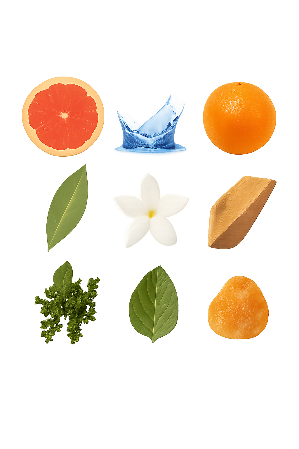 - نوتهای ابتدایی: گریپفروت، نتهای دریایی، نارنگی ماندارین