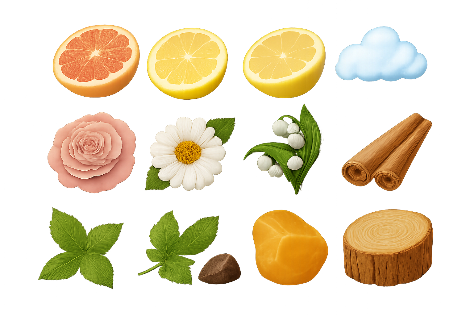 - نتهای پایه : چوب صندل، چوب سدر، مشک، عنبر، وانیل