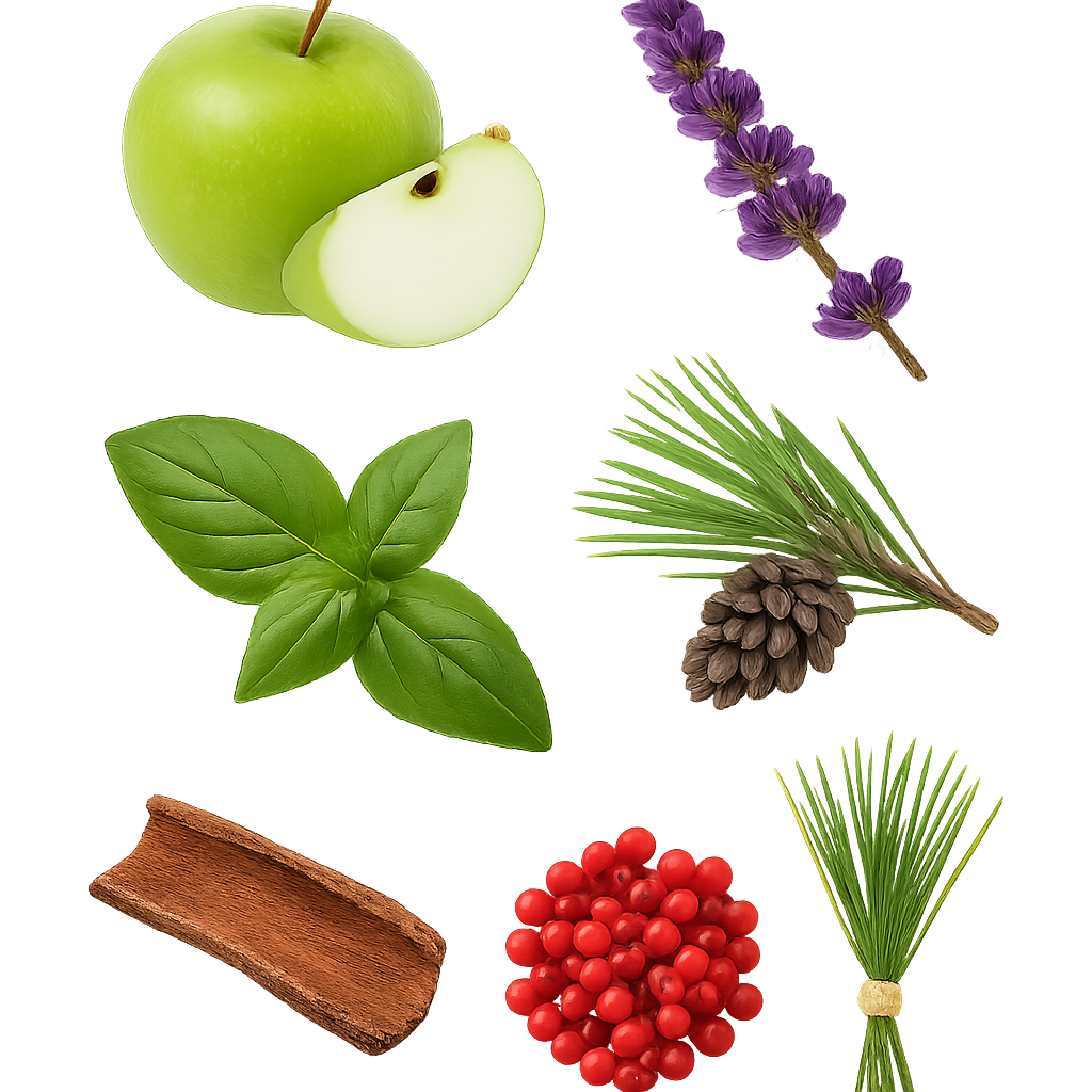 - نتهای اولیه : اسطوخودوس، ریحان، سیب سبز، گریپفروت