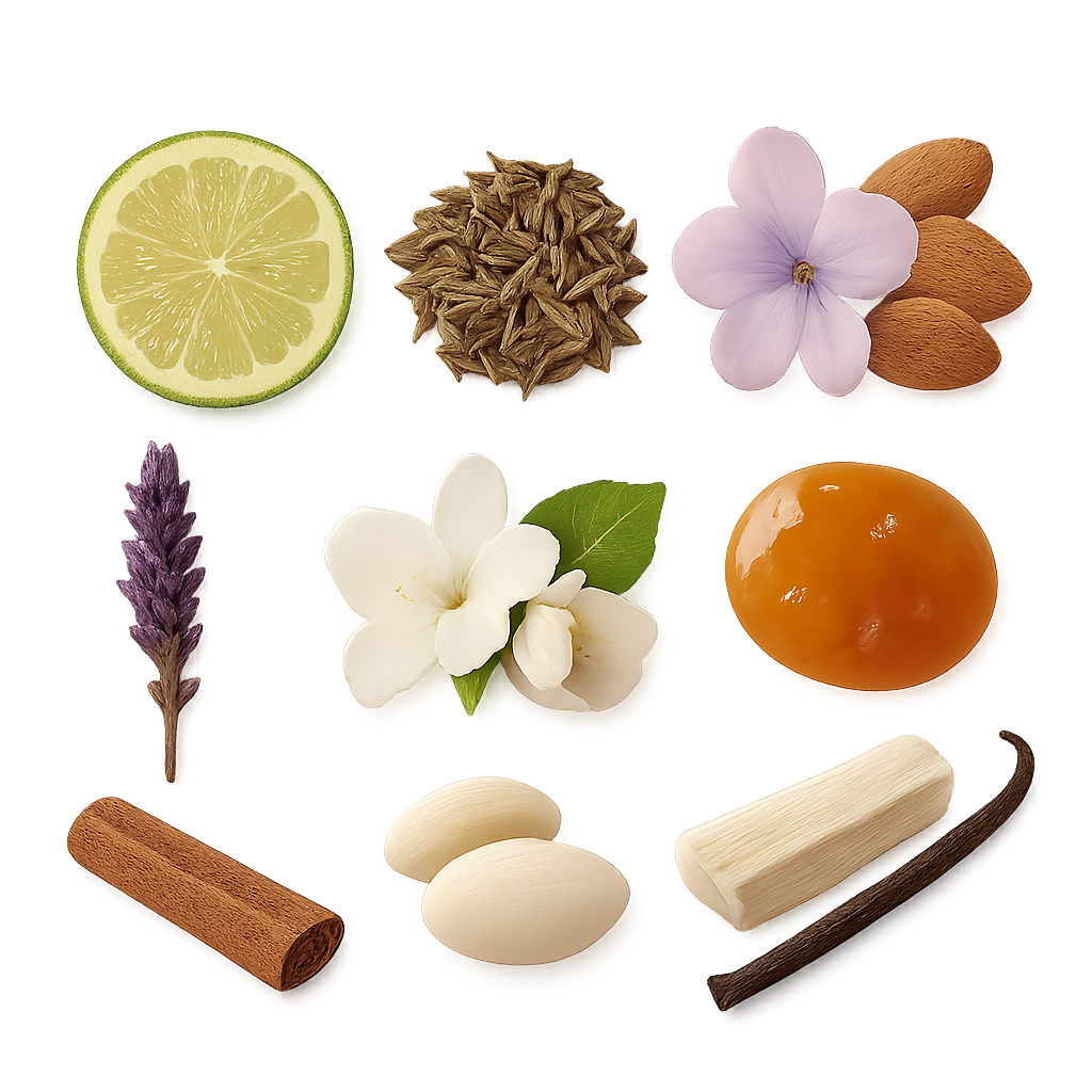 - نتهای میانی : اسطوخودوس، بادام تلخ، گل یاس