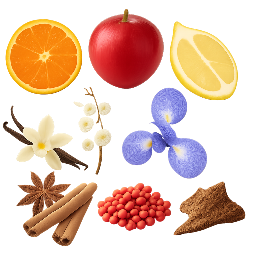 - نتهای ابتدایی: سیب، ترنج، اسطوخودوس، ماندارین