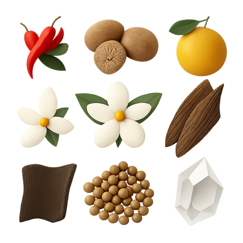 - نتهای ابتدایی: فلفل سیچوان، ترنج، هل، نرولی بیگارد