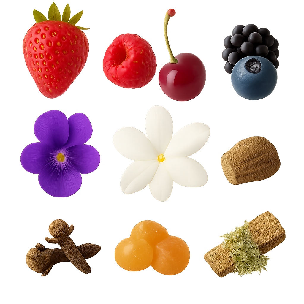 - نتهای ابتدایی : توتفرنگی، تمشک، گیلاس، توتهای قرمز – شیرین و پرانرژی